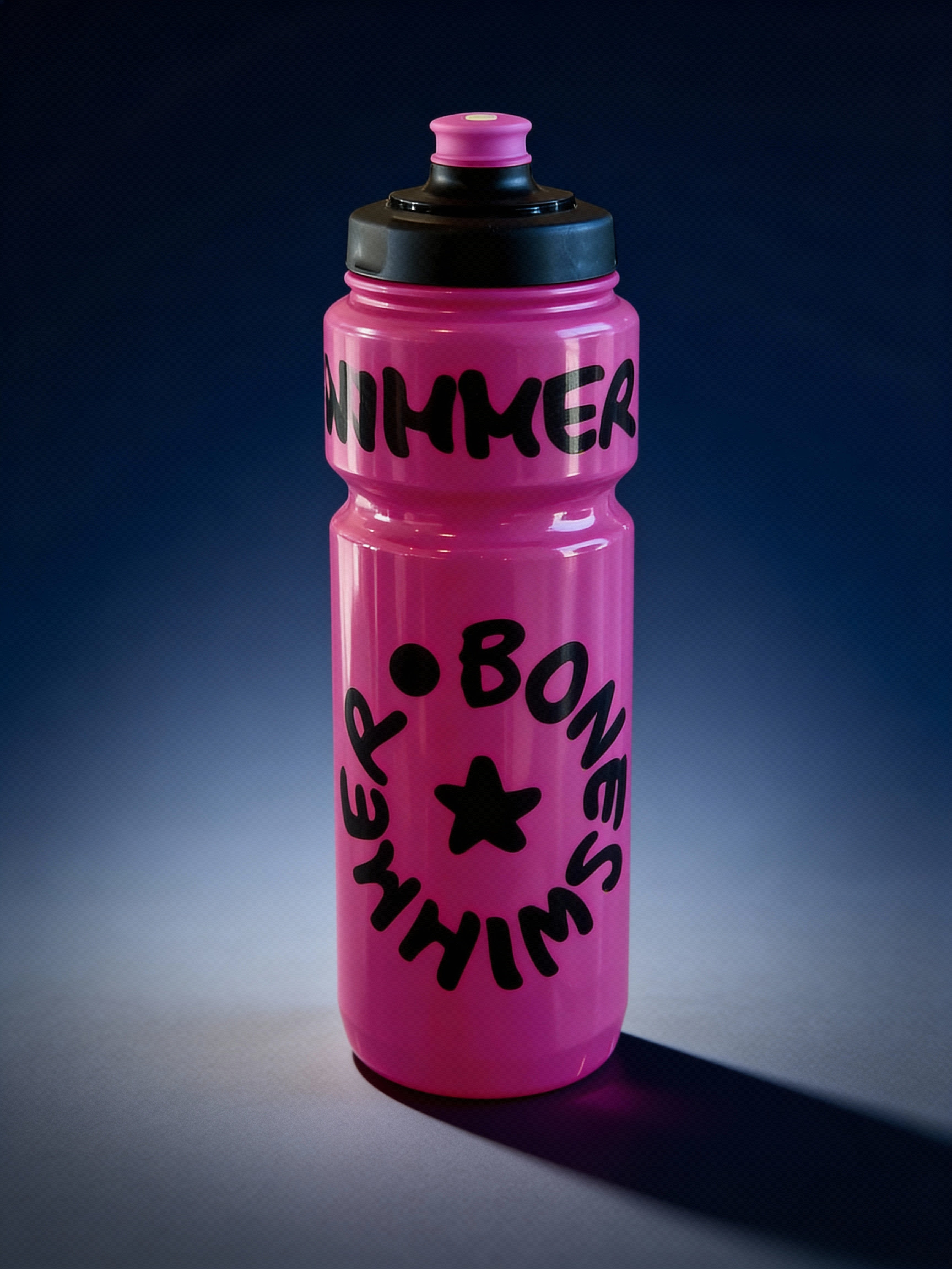 750ml Sports Water Bottle - BONESWIMMER Fuchsia Black Logo