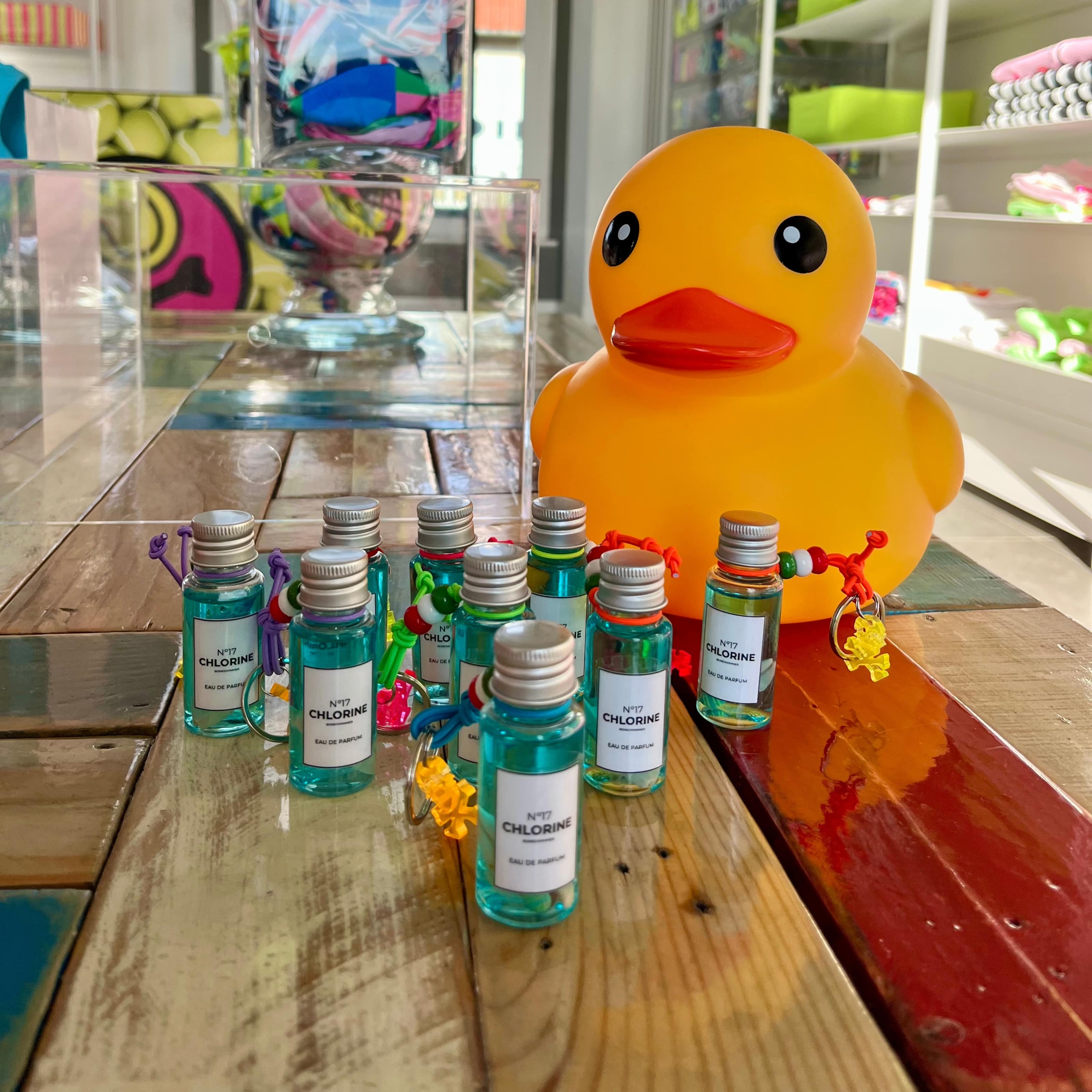 BONESWIMMER keychain with chlorine-themed charms, a symbol of your passion for the aquatic world.