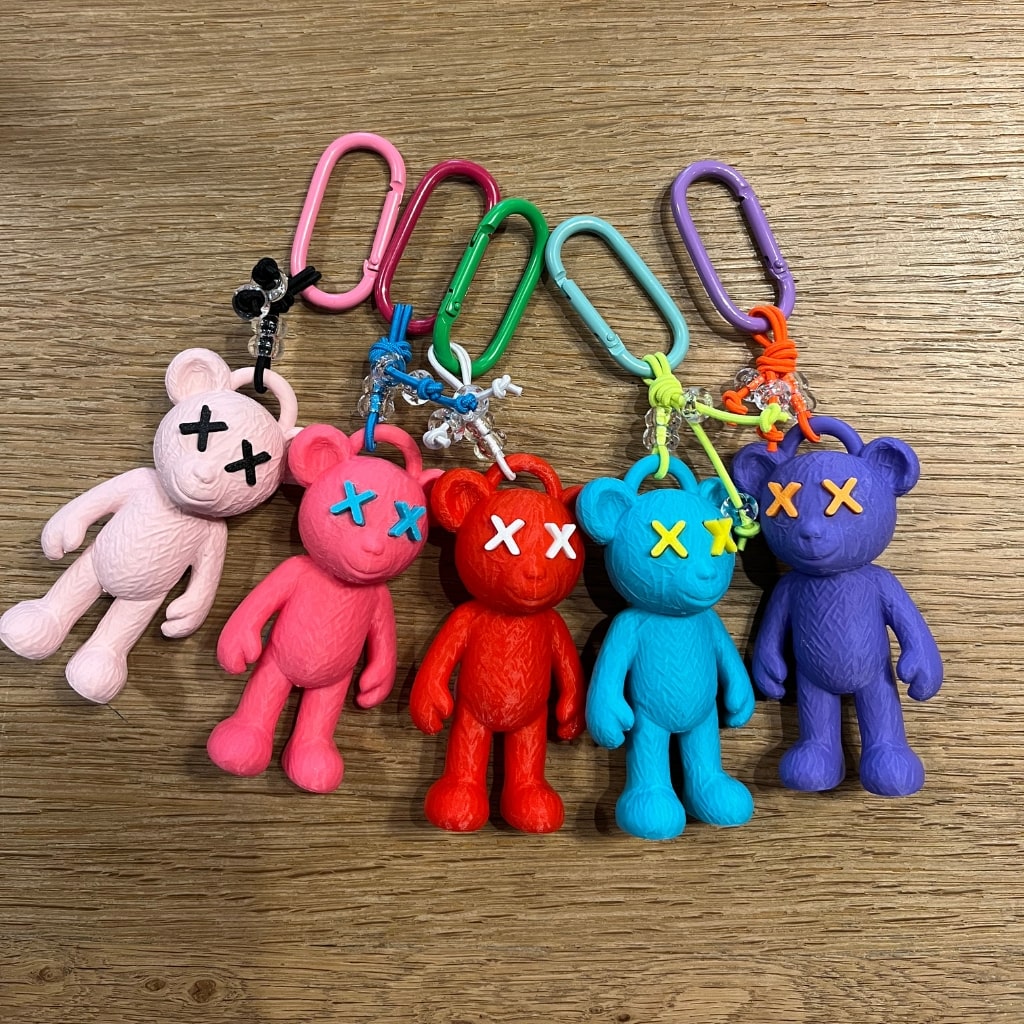 Teddy Psycho keychain charm in blue and yellow. Our iconic "Psycho" graphic becomes an exclusive three-dimensional charm, an Athletic Couture accessory made in Italy with high-precision 3D printing.