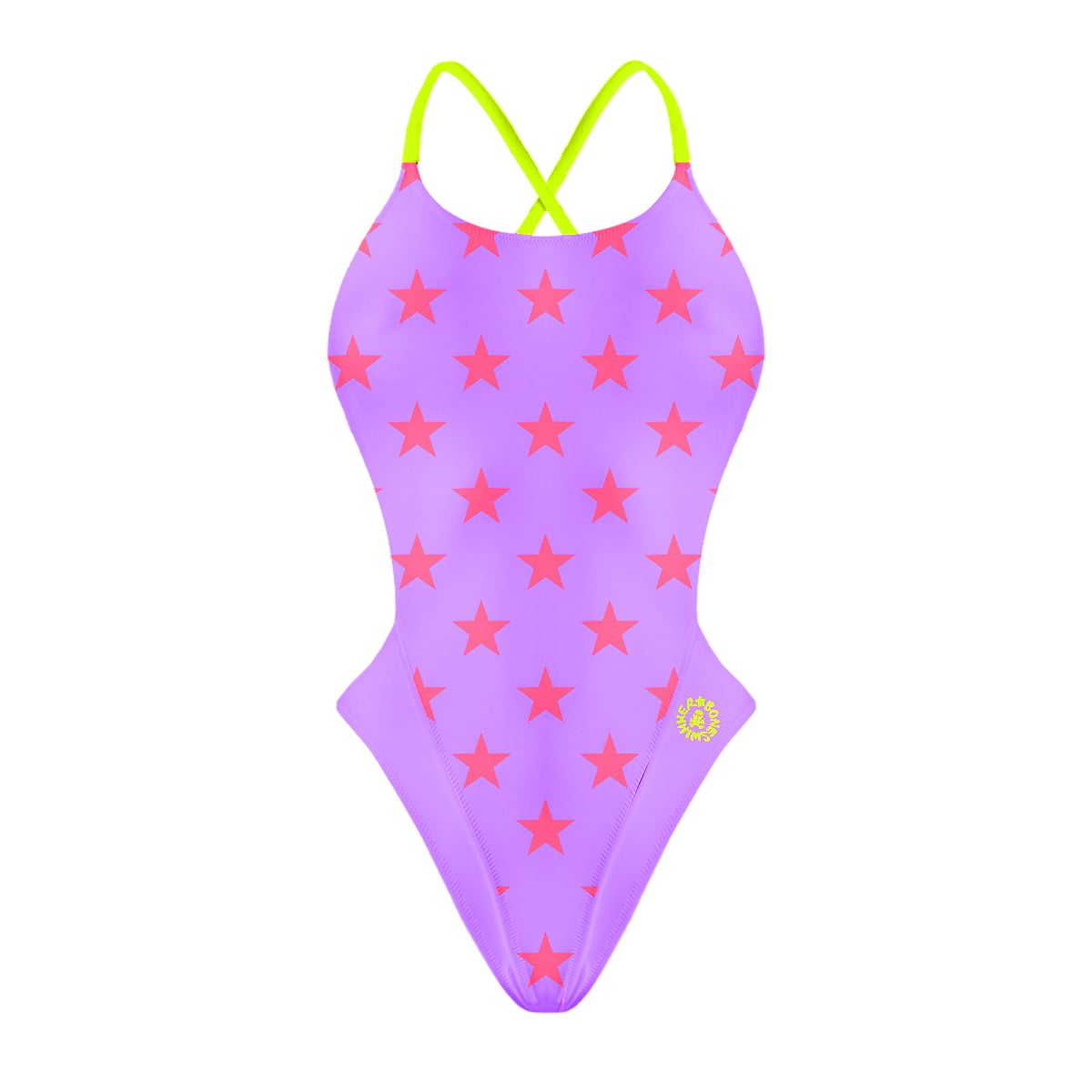 Maillot de bain une pièce pour femme Alte L028AF - Lilas à étoiles rouges fluorescentes