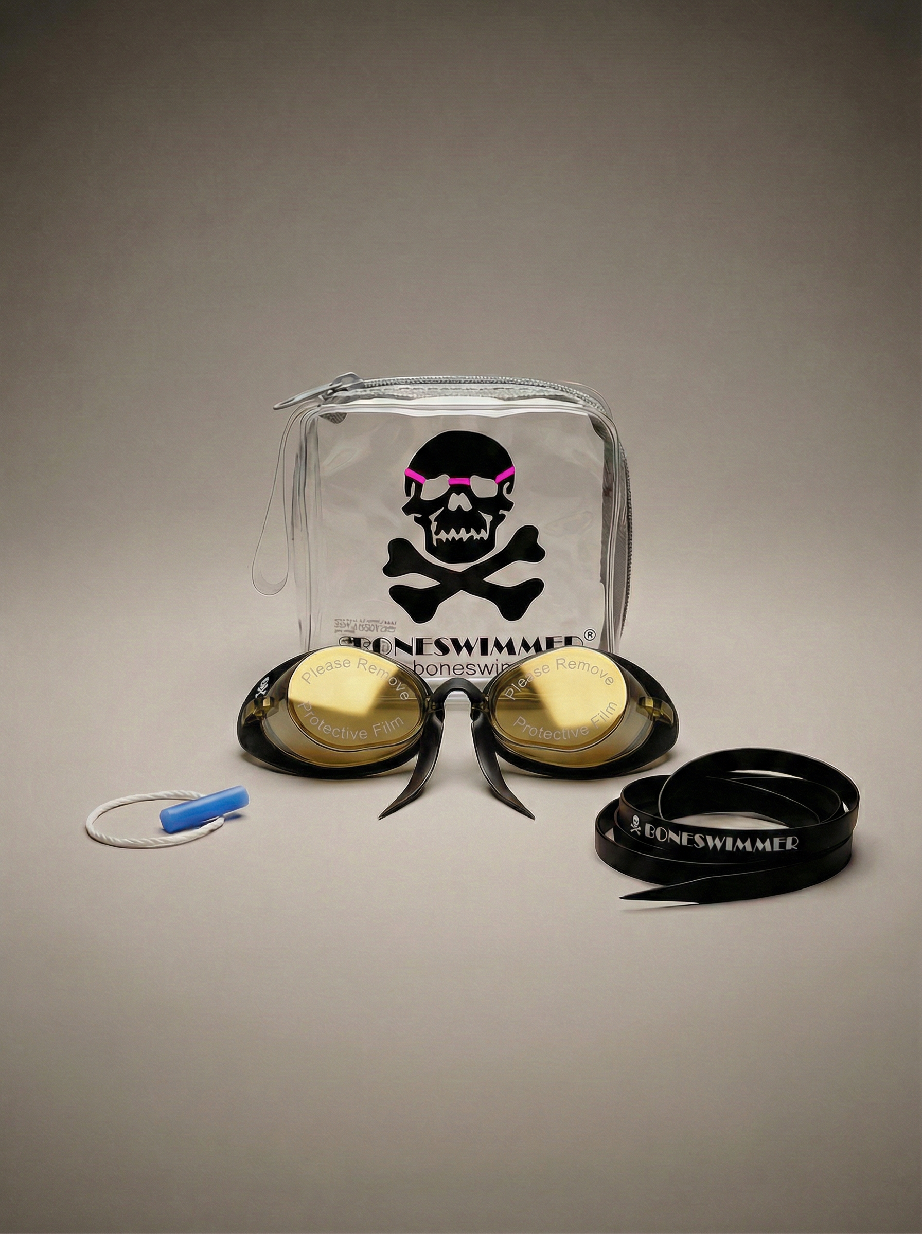 Lunettes de natation suédoises BONESWIMMER à verres miroir dorés, monture souple en silicone. Un design iconique et des performances exceptionnelles pour l'entraînement et la compétition.