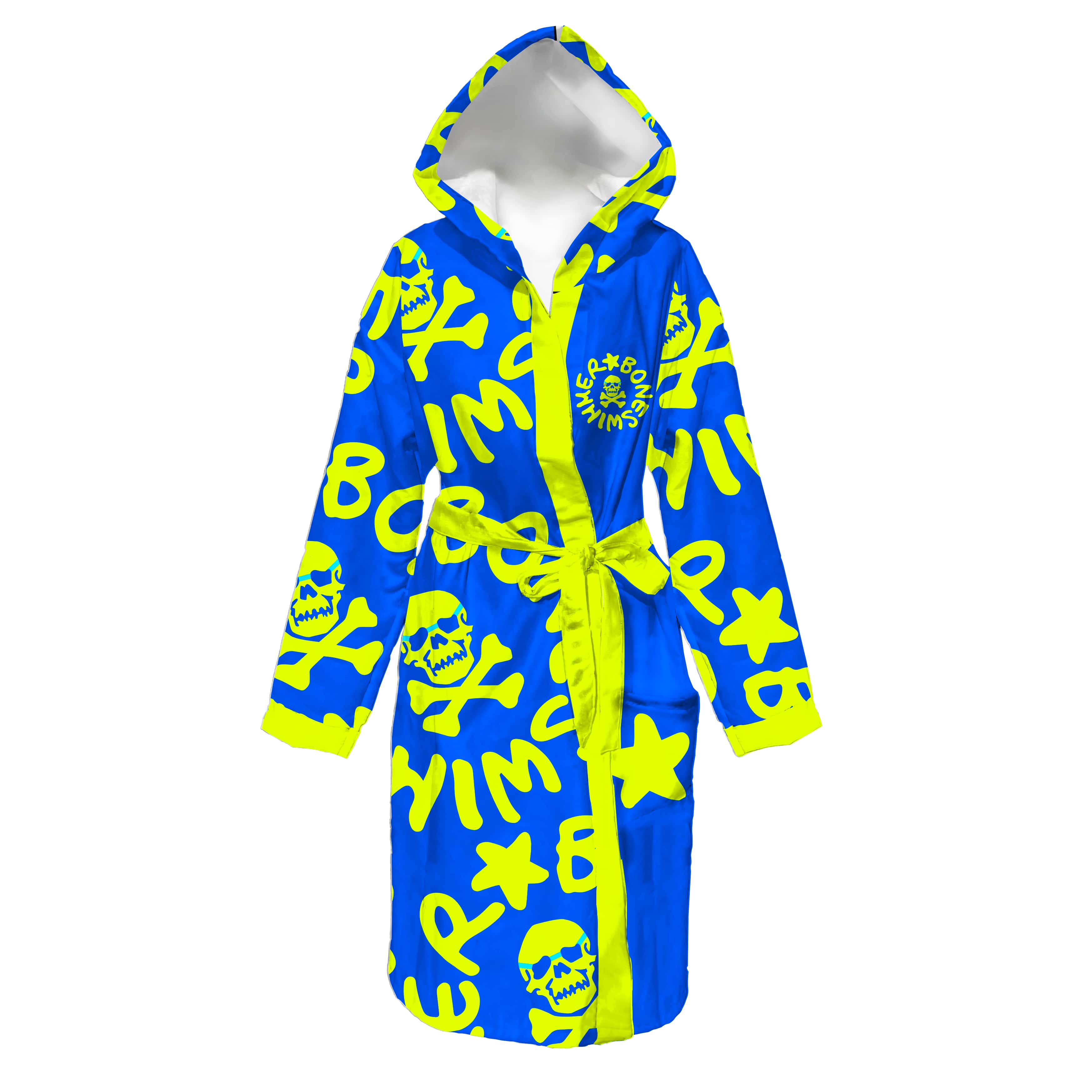 Accappatoio bimbo in microfibra BONESWIMMER, colore turchese con logo giallo. Morbido, leggero e super assorbente, è l'ideale per asciugarsi velocemente dopo l'allenamento in piscina.