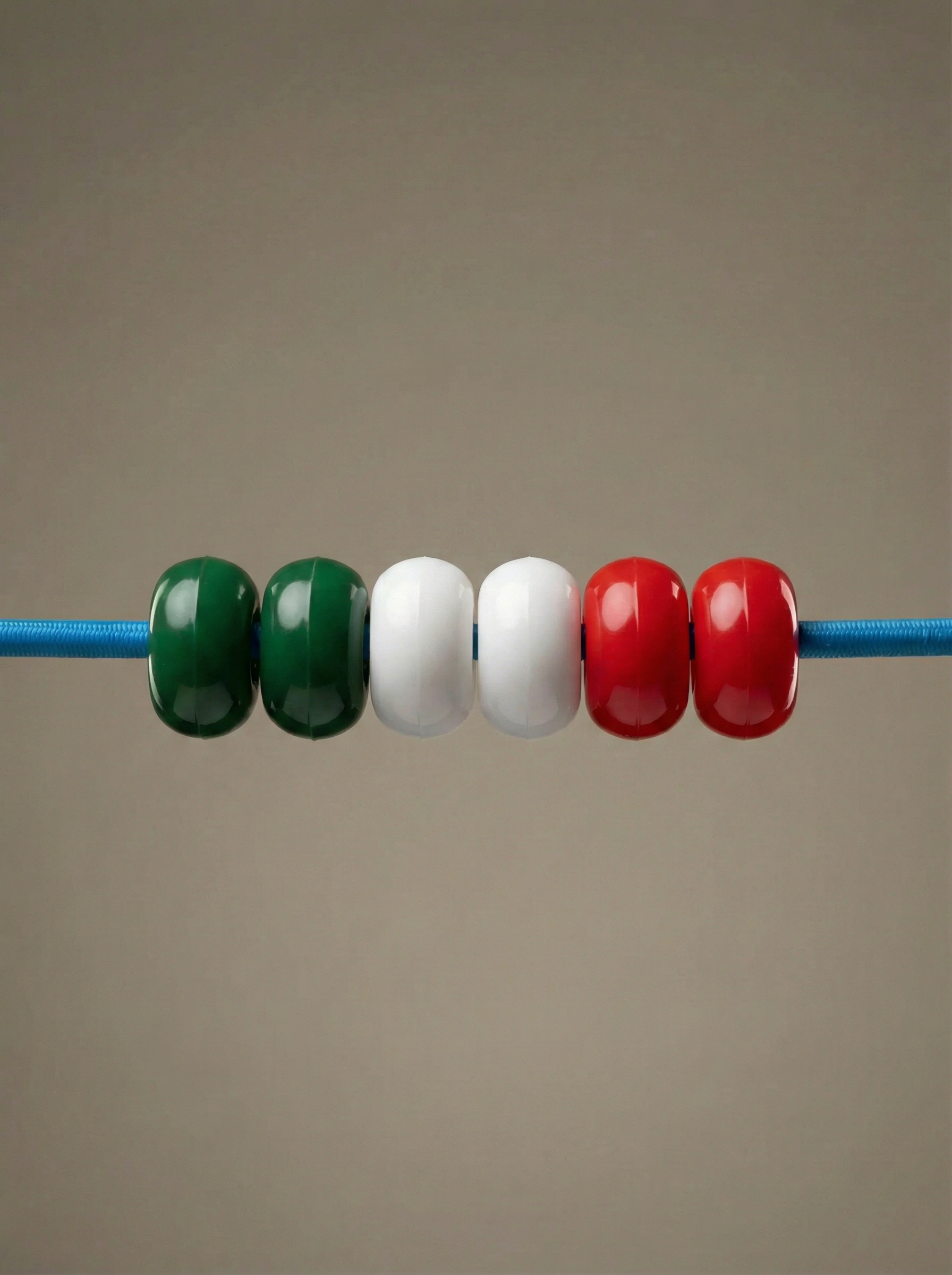 Vuoi un tocco ancora più iconico? Puoi rifinire il cordino con le nostre perline tricolore: Perline tricolore per elastico occhialini (set 6).