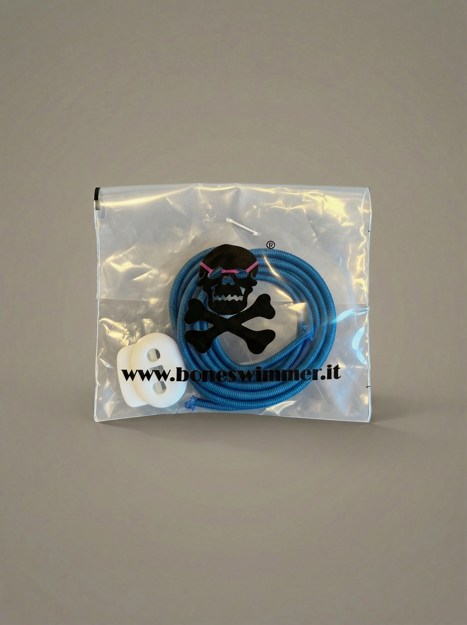 Fornito nel sacchetto in plastica marchiato BONESWIMMER: in ogni confezione trovi 1 cordino (1 m) + 1 fermacorda.