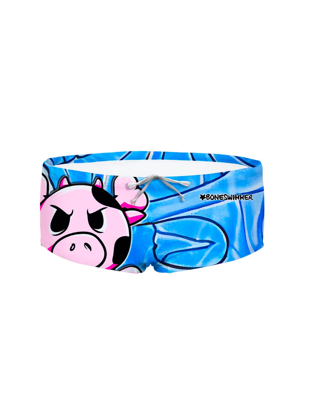 Costume parigamba da uomo da allenamento, modello Ucla. Stampa "Skullcow": un teschio di mucca stilizzato con un'estetica western e audace, per un look che non passa inosservato in vasca.