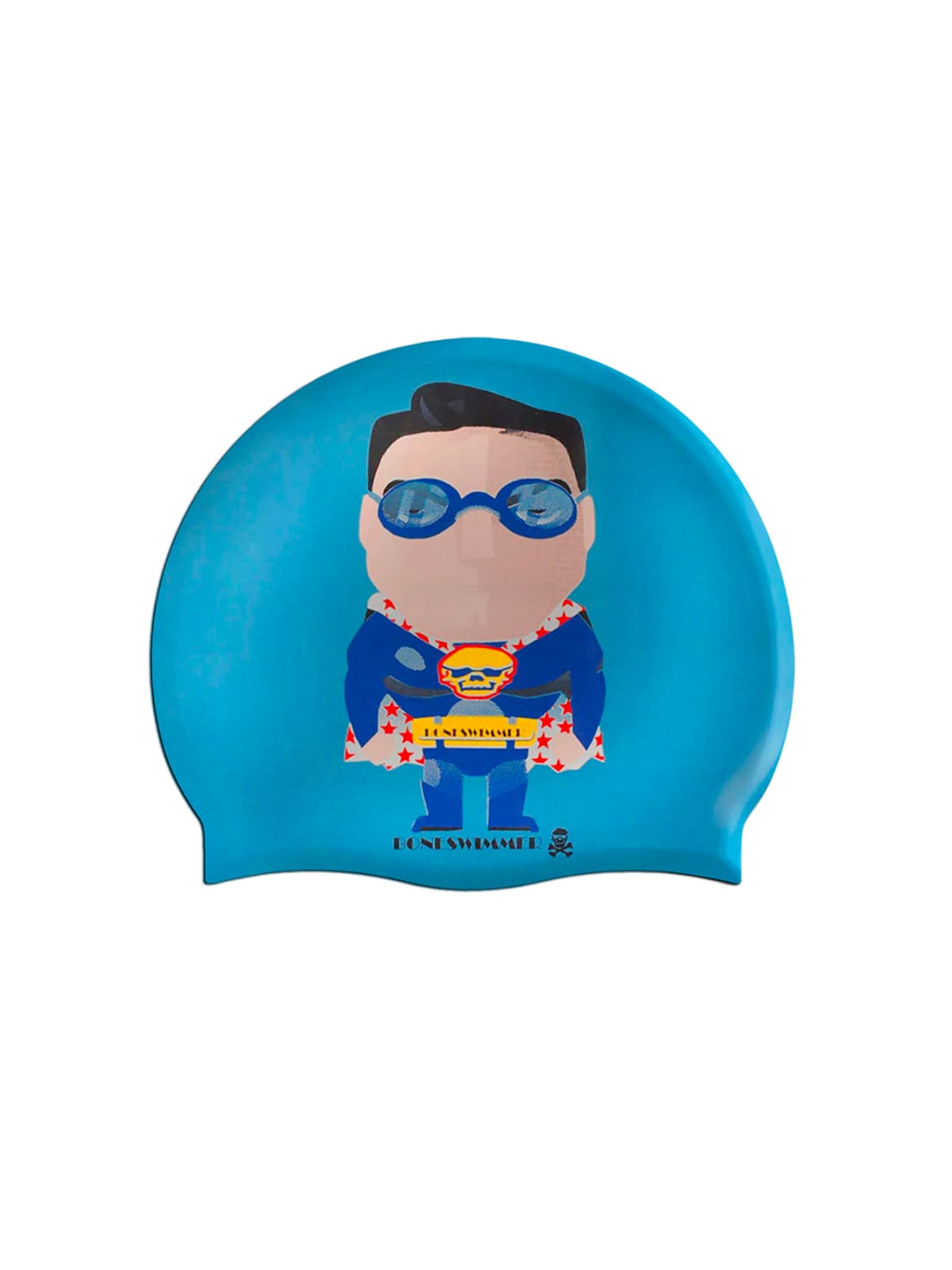 Cuffia da nuoto in silicone BONESWIMMER, stampa Superbone. Elastica, resistente e confortevole, ideale per proteggere i capelli dal cloro e migliorare l'idrodinamicità.