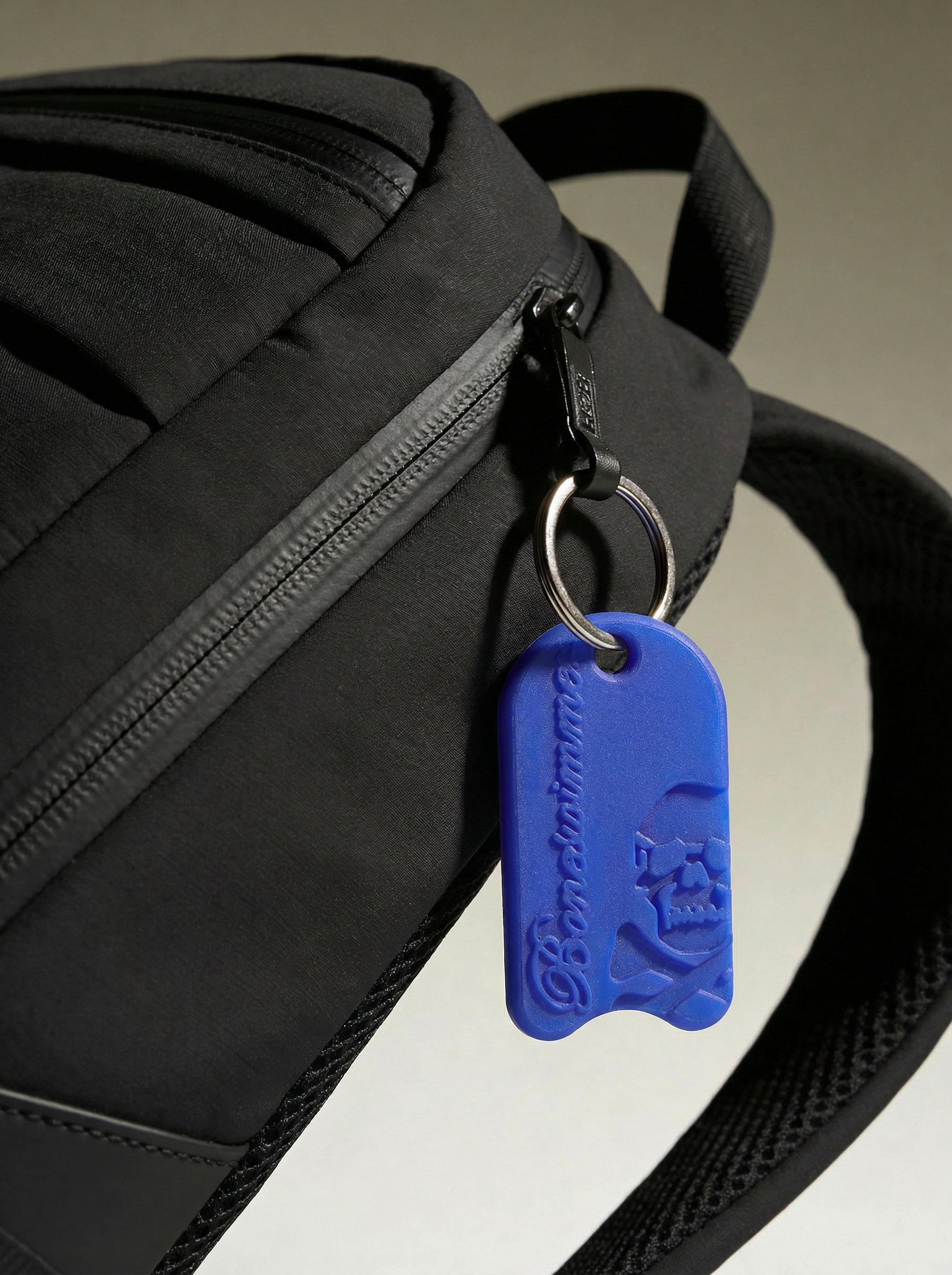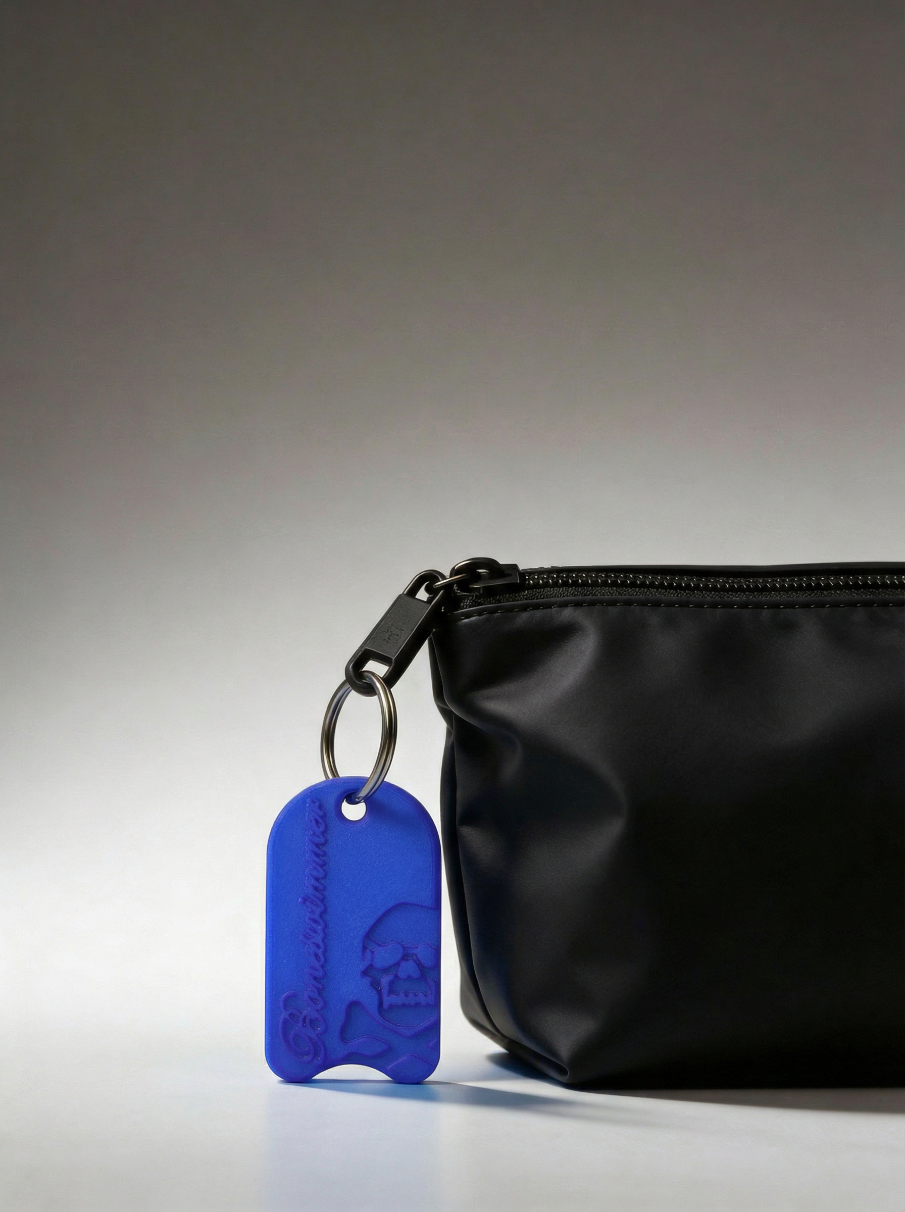 La tavoletta da allenamento — ridotta all’essenziale — diventa portachiavi. Un micro-oggetto “athletic couture”: tecnico, pulito, riconoscibile. In questa variante: Blu.