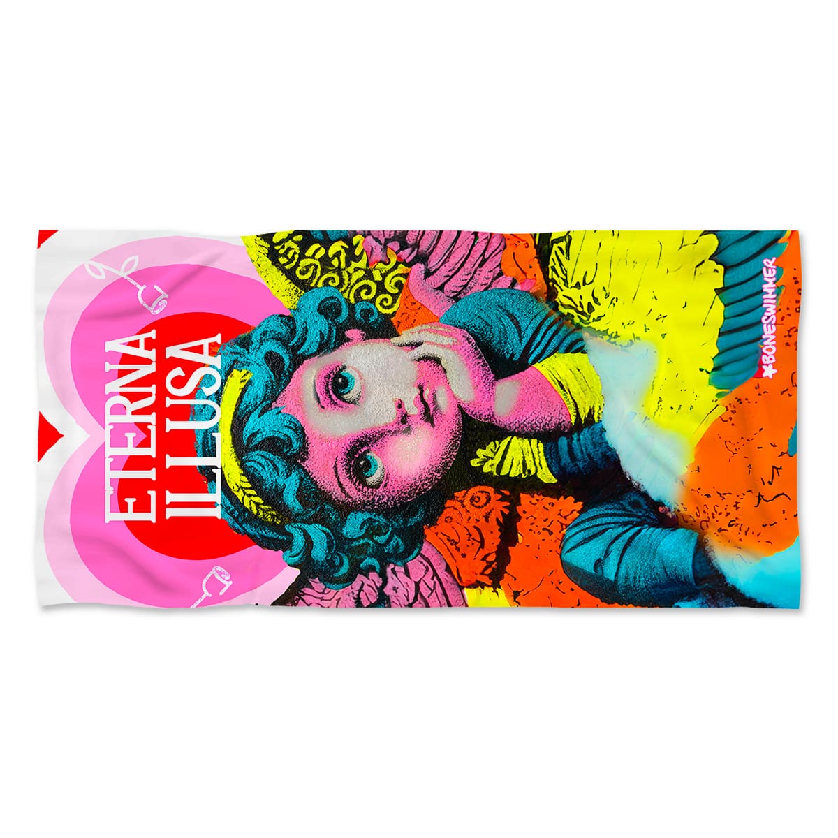 Telo grande in microfibra BONESWIMMER, stampa Illusa. Morbido, assorbente e ad asciugatura rapida: il compagno perfetto per il dopo-piscina.