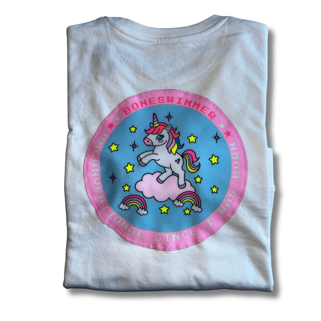 Boneswimmer training suits are made of 100% polyester PBT , completely free of any elasticity. This makes them suitable for the most extreme stresses and intensive, everyday use.