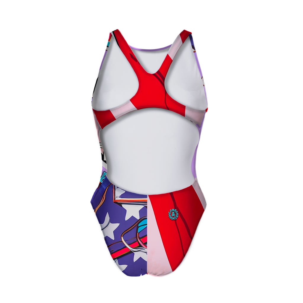 Style : Conçu pour le papillon et la nage libre, ce maillot de bain attire le regard avec son graphisme audacieux et ironique : un dauphin « méchant » façon cartoon, prêt à plonger du plot de départ. Ses couleurs vives et son esthétique américaine pop expriment énergie et détermination, reflétant la personnalité de celles et ceux qui affrontent l’eau avec courage et intrépidité. Idéal pour celles et ceux qui recherchent un maillot de bain alliant fonctionnalité sportive et style charismatique et original.