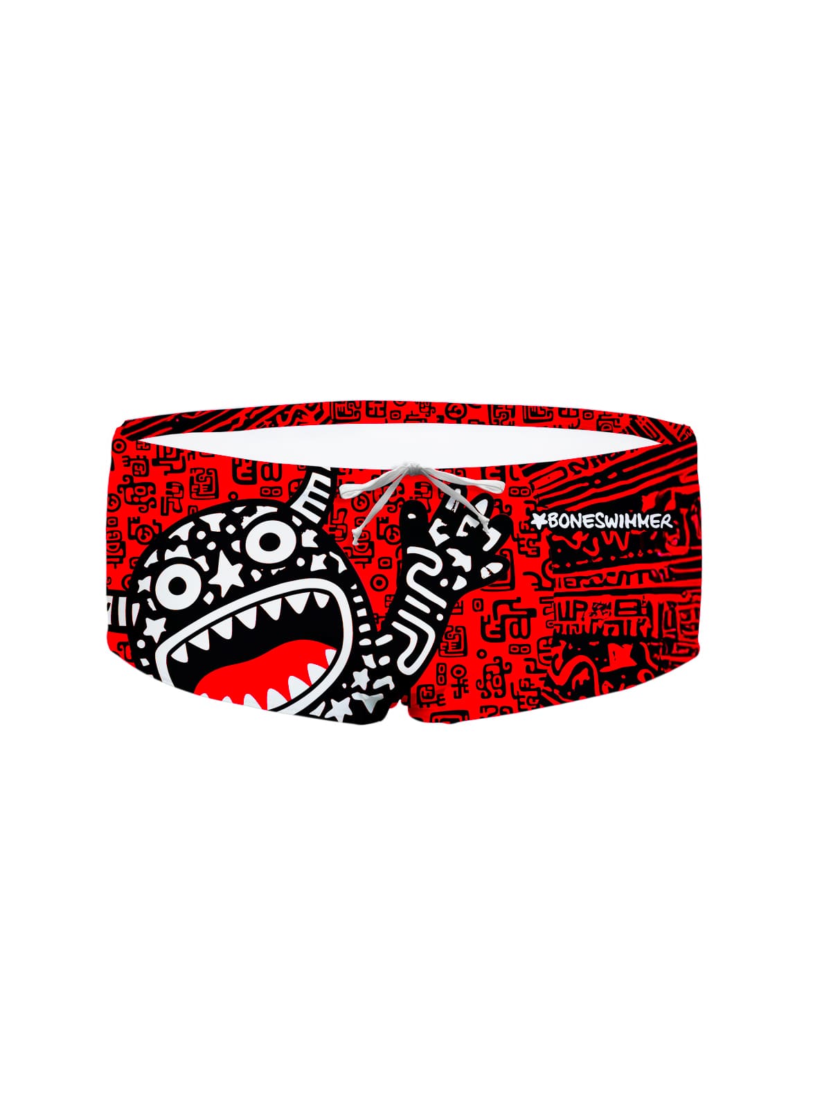 Style : Ce maillot de bain se distingue par ses graphismes intenses et dynamiques, dominés par le rouge et le noir, mettant en scène un personnage stylisé, évoquant un monstre, débordant d’énergie. Son style s’inspire du street art et du pop art, avec des lignes audacieuses et des détails urbains qui expriment une force brute et une volonté de se démarquer. Le porter révèle une personnalité rebelle et déterminée, idéale pour celles et ceux qui recherchent un maillot de bain alliant performance et caractère unique.