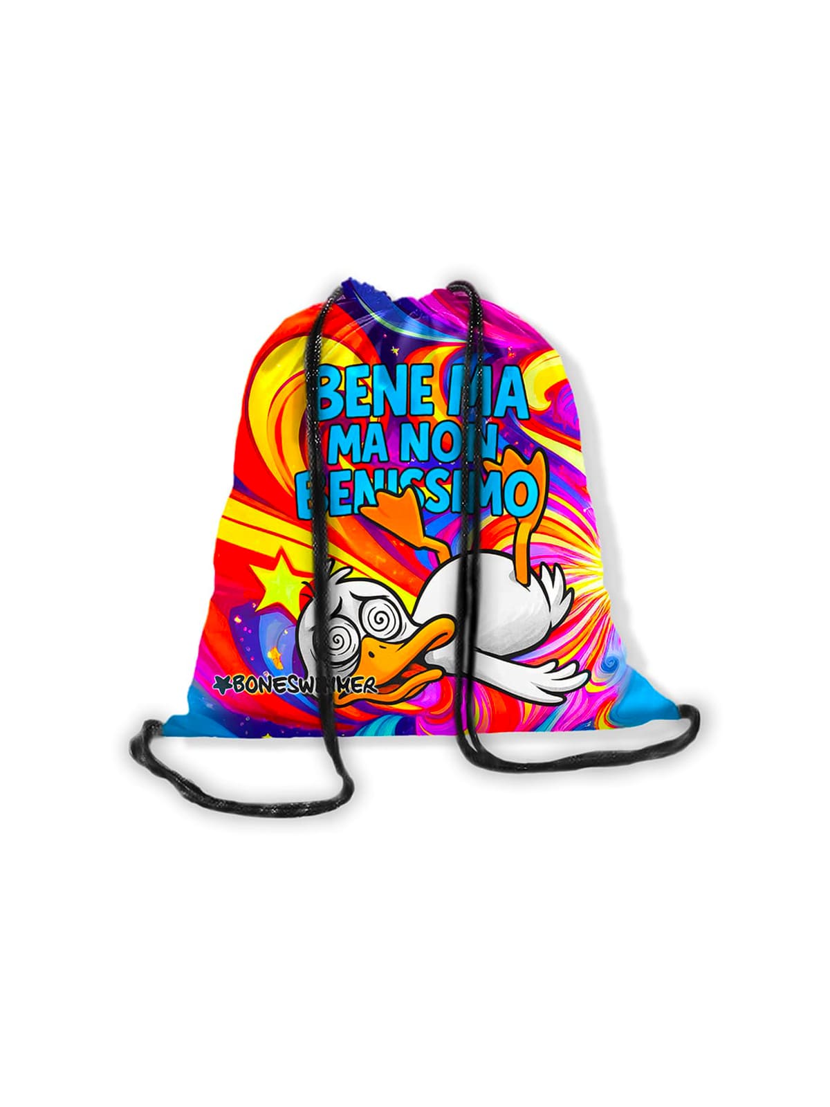 Style : Ce sac de piscine en microfibre est une explosion de couleurs et d’énergie. Son motif pop, avec un fond psychédélique multicolore et un canard cartoon un peu perdu, dégage une touche d’humour et de vitalité, idéal pour les amateurs de natation et de sport qui aiment la fantaisie et la personnalité. Léger et pratique, il est parfait comme sac de sport pour la piscine, la salle de gym ou les loisirs , et se distingue par son style unique et ludique qui ne passera pas inaperçu.