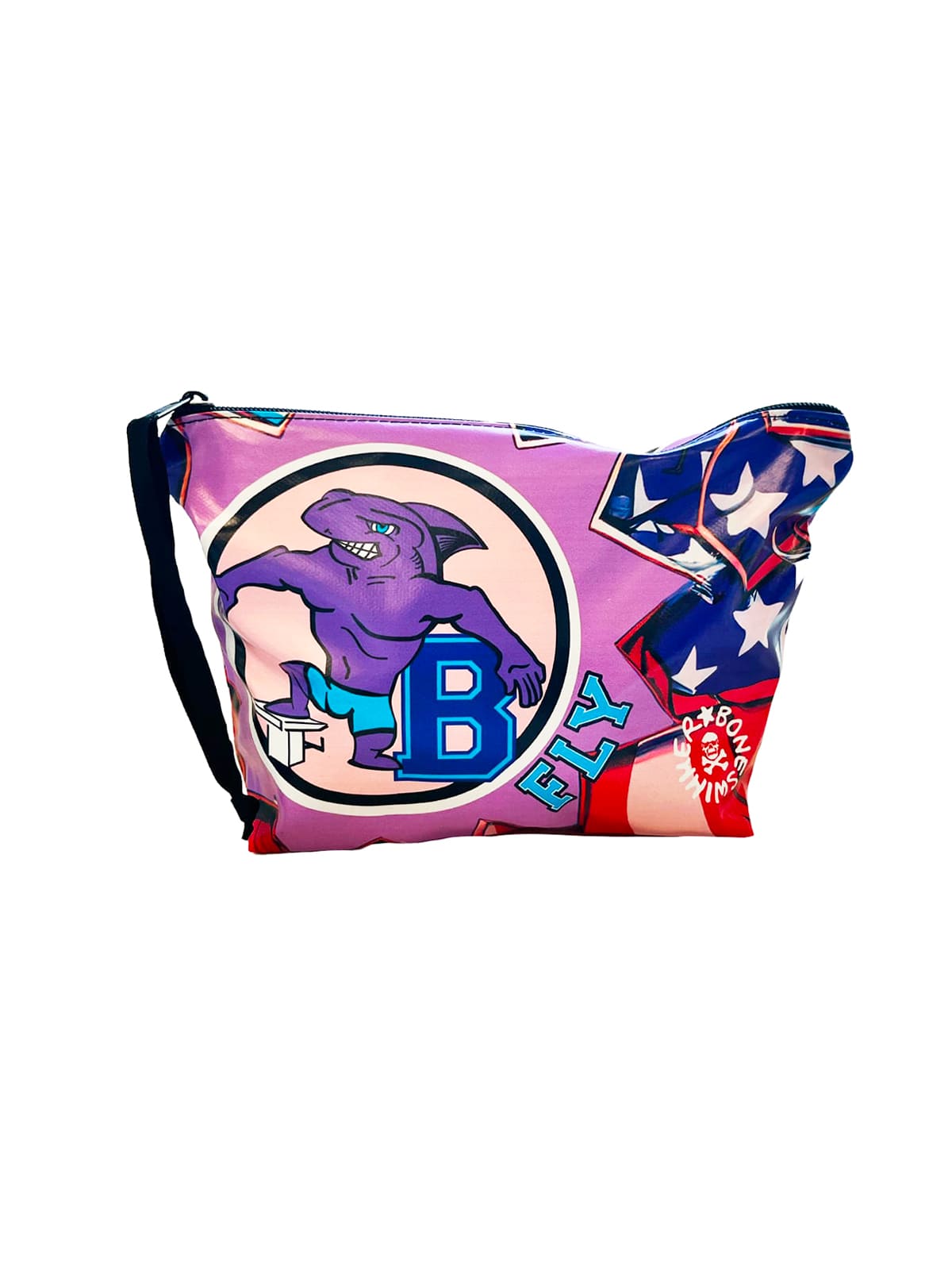 Stile: dedicato al nuoto a delfino o farfalla, questo beauty della linea FLY cattura lo sguardo con la sua grafica audace e ironica dei college americani: un delfino "cattivo" in stile cartoon, pronto a tuffarsi dai blocchi di partenza. I colori vivaci e l’estetica pop trasmettono energia e determinazione.