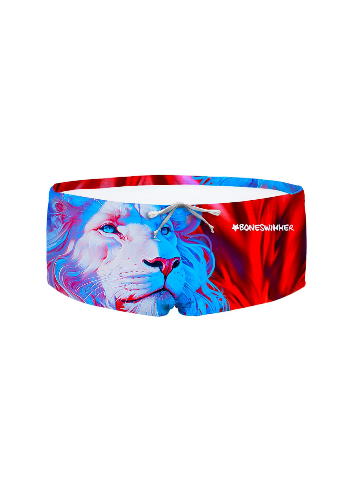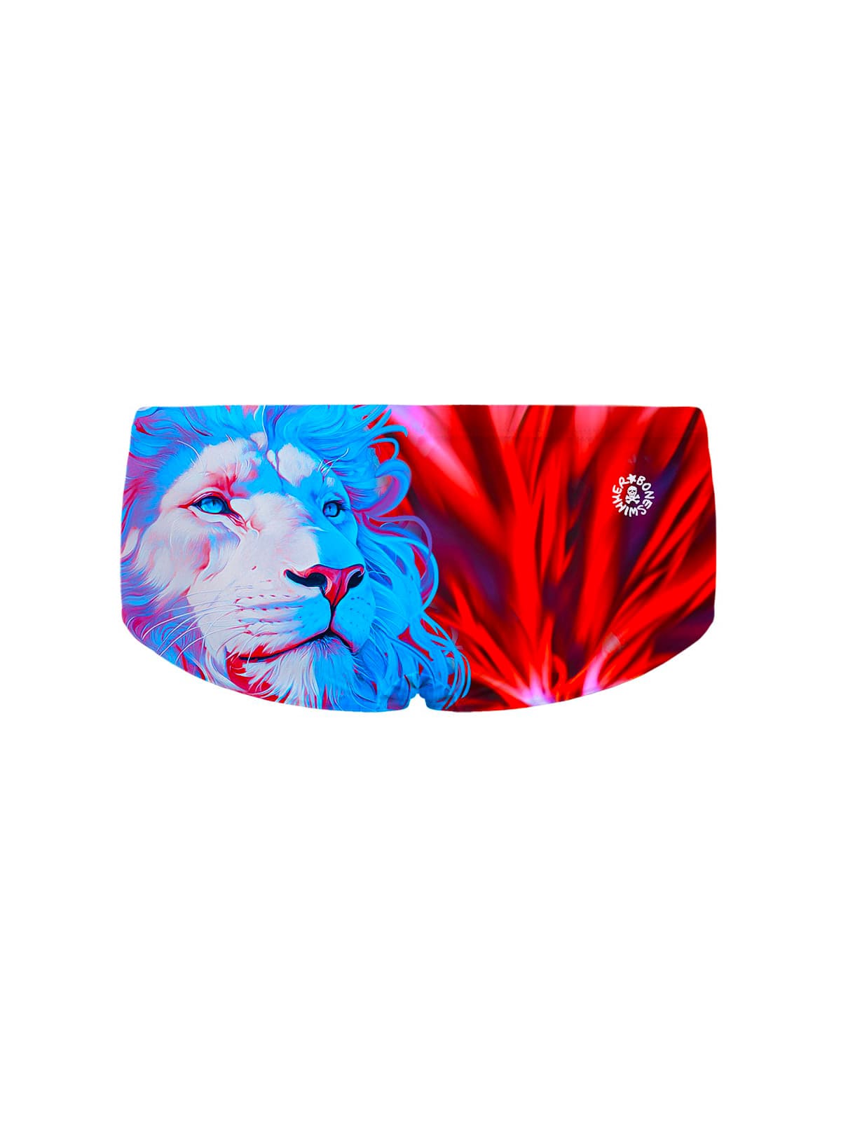 Stile: immagine potente e vibrante in questo costume, dominata dal volto maestoso di un leone, simbolo di forza interiore e carisma naturale. I colori intensi, in particolare il contrasto tra il blu freddo e i toni caldi del rosso, esprimono un equilibrio dinamico tra determinazione e passione, suggerendo una personalità che non teme nulla e afferma la propria presenza con autorità e sicurezza. Chi sceglie questo costume ha probabilmente una natura regale e audace, pronta a dominare ogni sfida con coraggio e un senso innato di leadership.