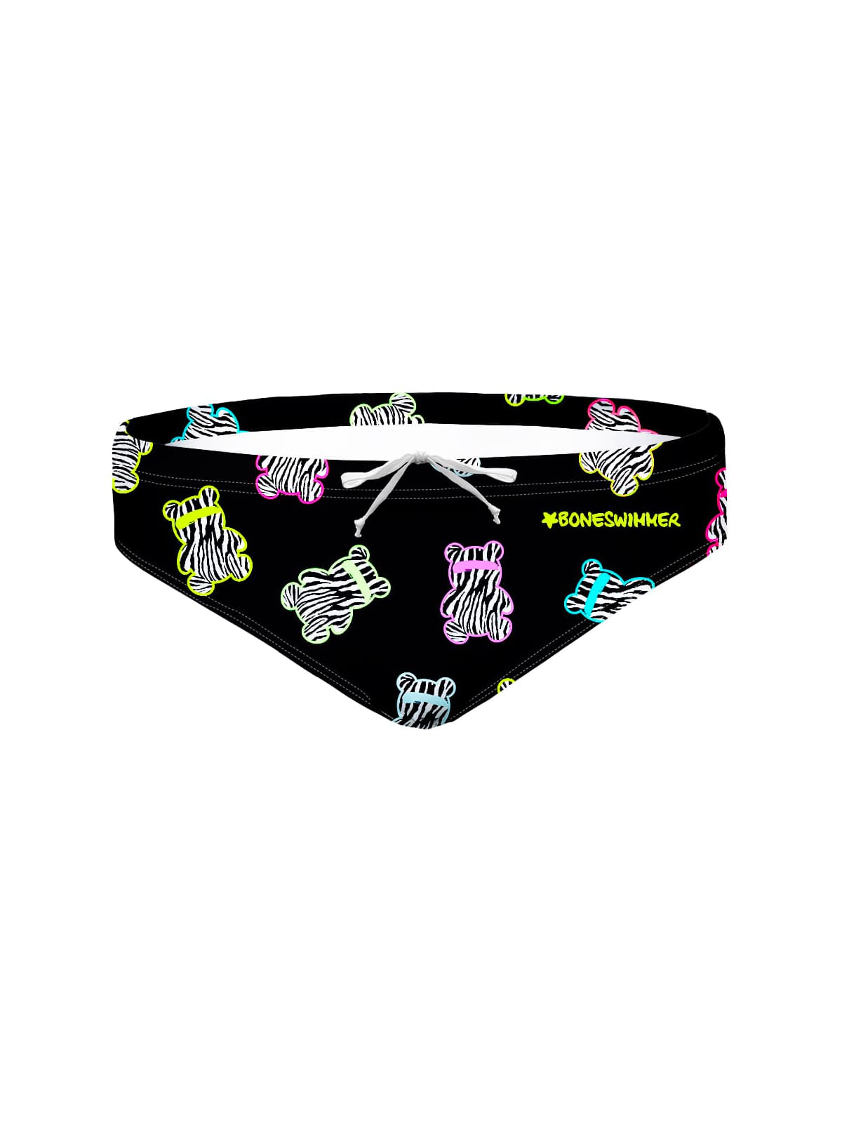 Stile: il modello Abibò è un costume dal design giovane e vivace che unisce creatività e ironia. La base nera è decorata con simpatici orsetti (come quelli gommosi) stilizzati zebrati, ripetuti in pattern multicolore con profili fluo. Il contrasto cromatico tra il fondo scuro e le tonalità accese conferiscono un carattere originale e fuori dagli schemi, perfetto per chi desidera distinguersi con uno stile divertente e contemporaneo. Un costume pensato per chi ama il nuoto in piscina, ma vuole esprimere la propria personalità con dettagli grafici particolari e ironici.
